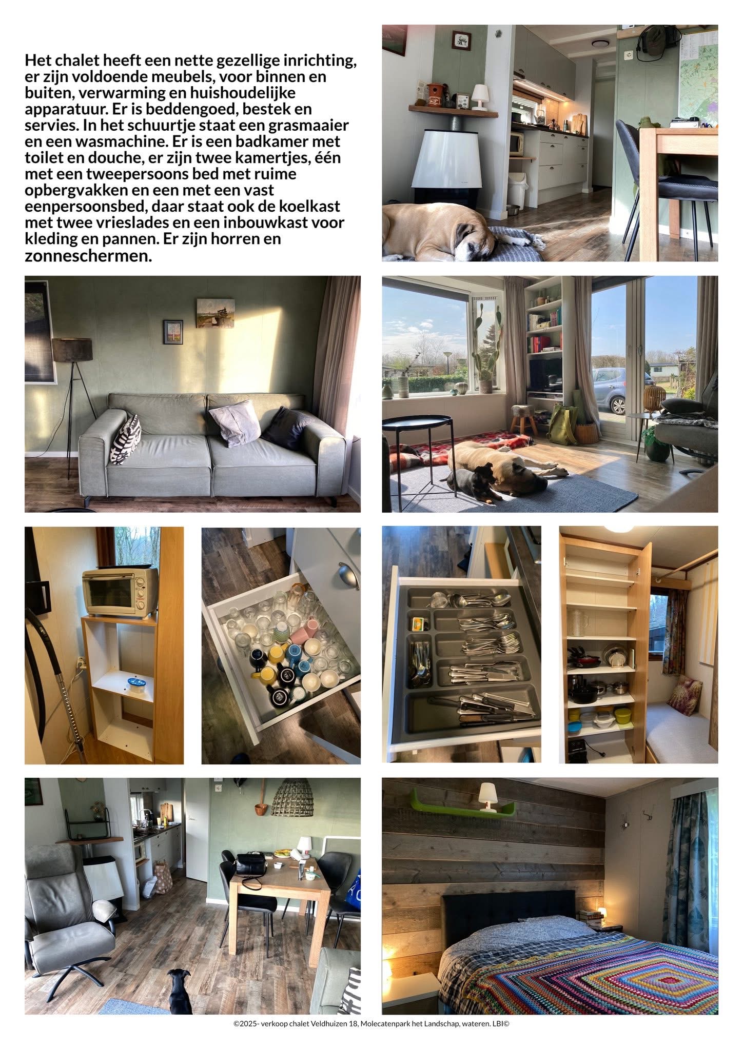 Het chalet bieden wij te koop aan en voor deze prijs omdat we er jammergenoeg niet vaak genoeg naartoe kunnen. Het huisje is bijna 25 jaar oud. Er is een contract voor deze vaste plek en het chalet erop voor 5 jaar. Hierna moet je een andere plek voor dit chalet zoeken of een nieuwer chalet op deze plaats zetten met een nieuw contract met Molecaten Park Het Landschap. Je kunt het chalet niet meer verkopen maar als je dat wilt wel 31 nachten per jaar verhuren.